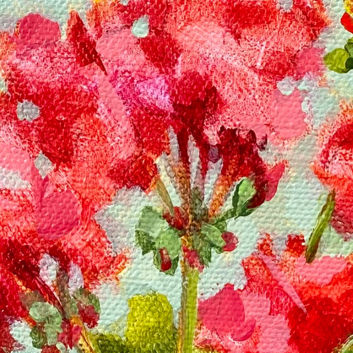 Painting red geraniums in a loose style can greatly enhance your artistic abilities in several ways. Firstly, this approach allows you to break free from the constraints of realism and focus on capturing the essence and mood of the subject. You can experiment with bold brushstrokes, vibrant colors, and expressive techniques, ultimately infusing your artwork with a sense of energy and spontaneity. You'll be encouraged to trust your intuition and embrace imperfections, as you explore the dynamic interplay between light, shadow, and form. Enjoy painting this little jewel of red geraniums and learn how to create a loose and vibrant painting to share or keep as part of your collection.