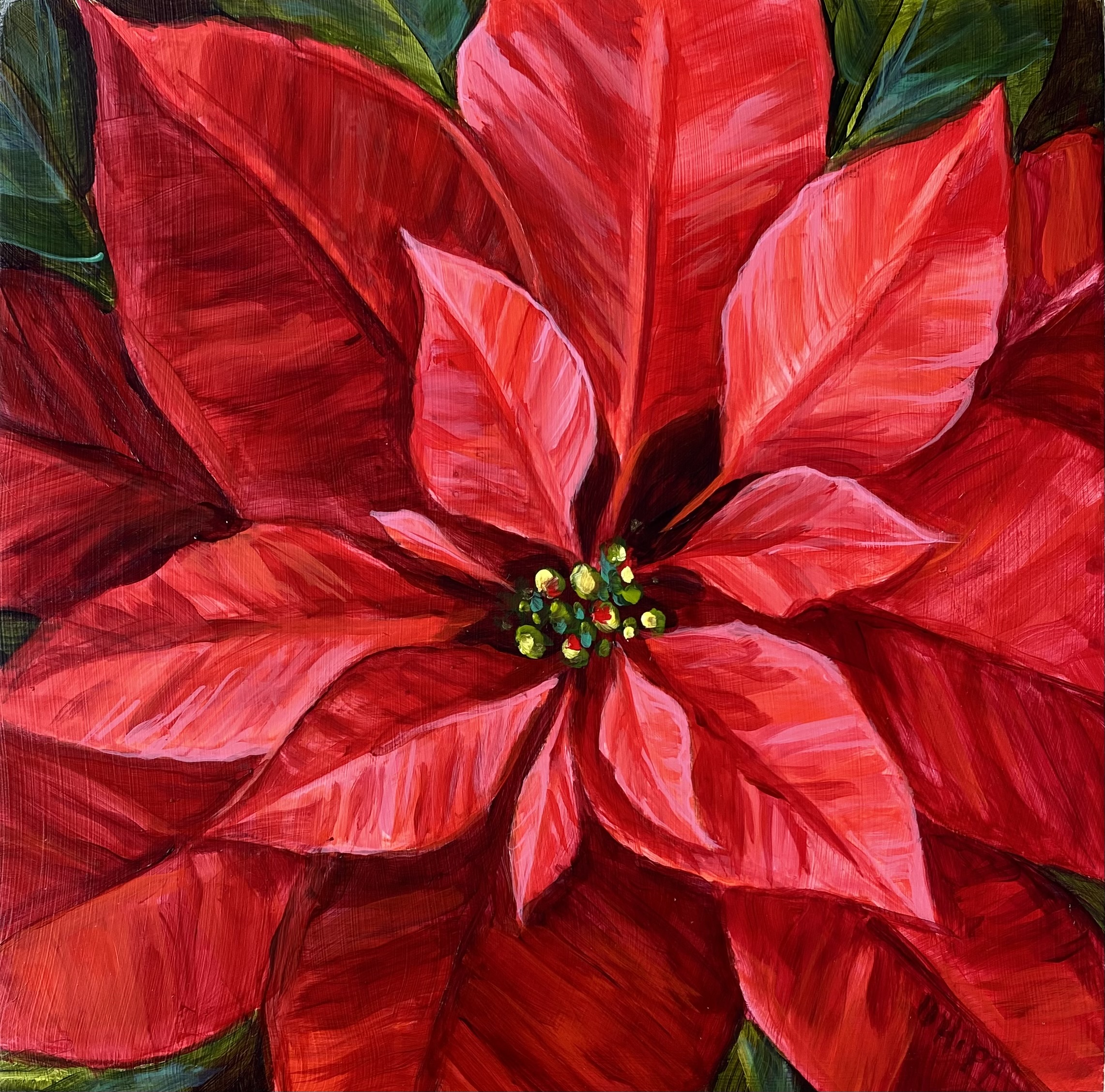 Celebrate the spirit of the holidays with this festive 8x8 inch - Red Poinsettia acrylic painting tutorial — a perfect project for both beginners and seasoned painters alike. In this step-by-step lesson, you’ll learn the fundamentals of acrylic painting, from layering rich reds and greens to creating depth and contrast with light and shadow. The bold, velvety petals of the poinsettia come to life as you explore brush techniques, blending, and color mixing — all essential skills for building confidence in your artistic journey. Whether you’re painting for fun, to decorate your home, or to give a handmade gift, this cheerful holiday floral will fill your season with color, creativity, and joy.